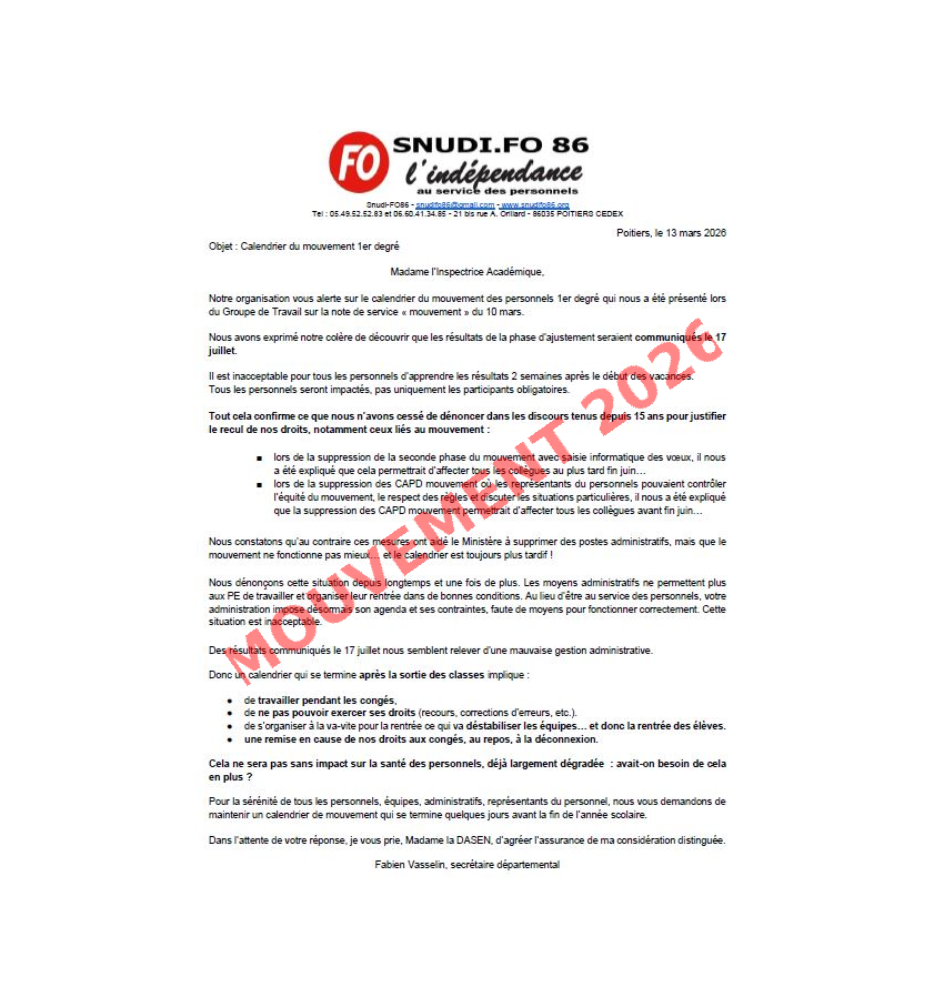 - Mouvement 2026 : Groupe de Travail sur la Note de service du Mouvement