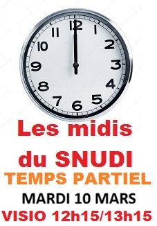 - Réunion syndicale VISIO-RIS “TEMPS PARTIEL” : mardi 10 mars – 12h15/13h15.